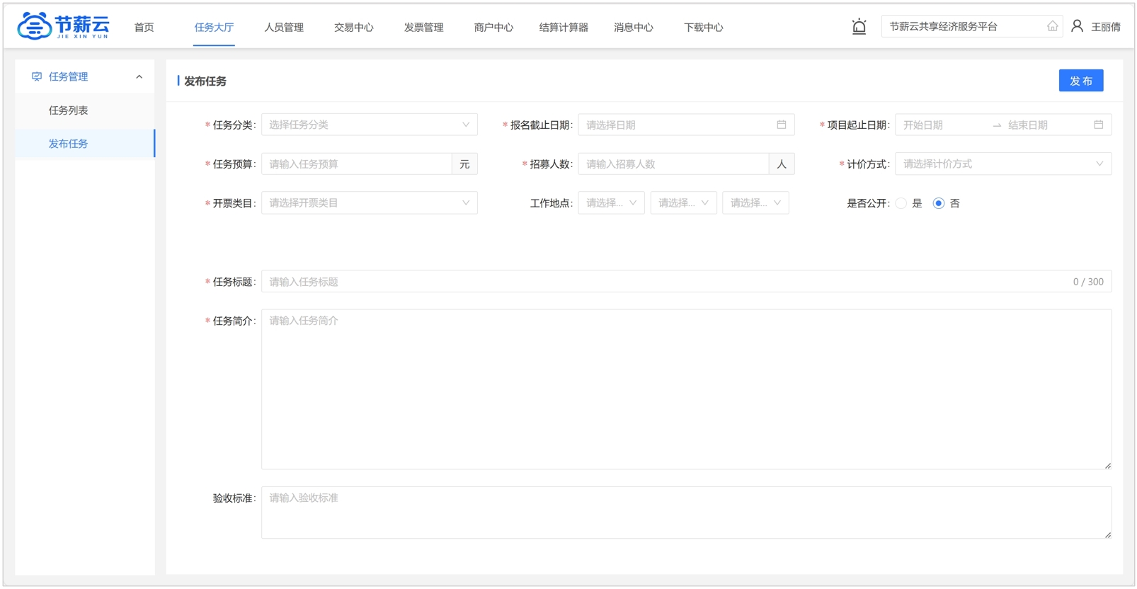 發(fā)布任務(wù),添加任務(wù)成員及驗收結(jié)算驗收付款