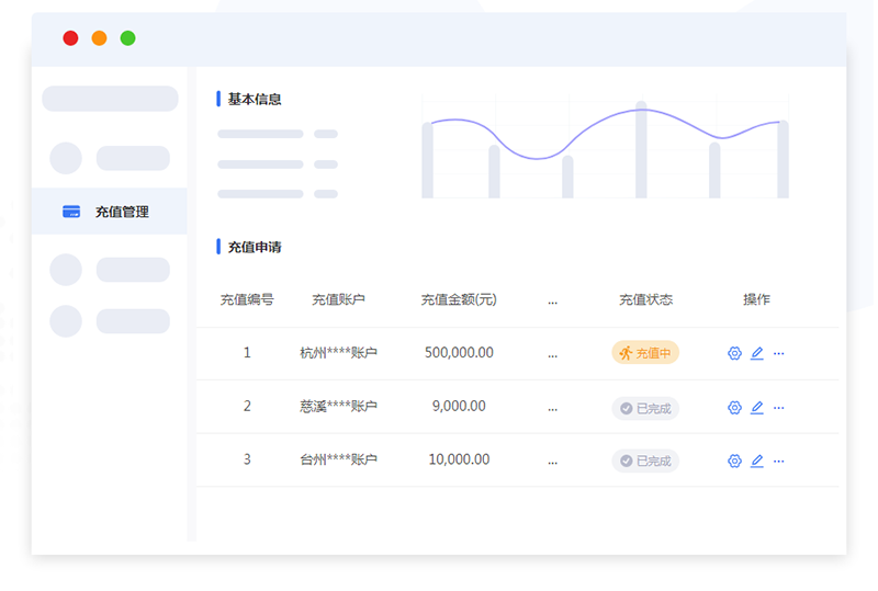 高效概覽賬戶詳情,充值發(fā)薪,申請開票人員簽約