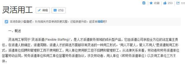 百度百科上的靈活用工詞條
