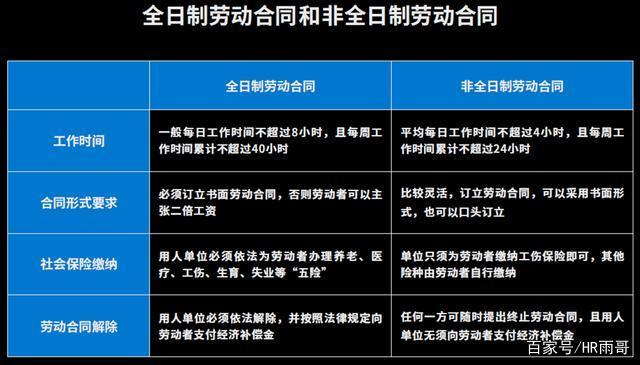 非全日制用工與全日制用工的區別如下: